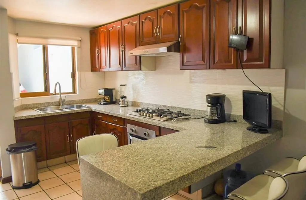 En su interior, encontrarás un estudio perfecto para el trabajo en casa, área de lavado y clósets en las recámaras y su baño propio, en la principal vestidor y jacuzzi para 2 personas. La cocina integral con barra desayunadora de granito y acceso directo. El estado de conservación es bueno, garantizando una estancia agradable.